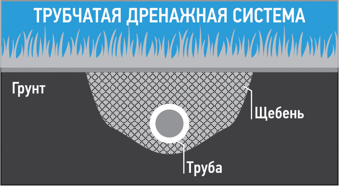 - система из дренажных труб – подходит для газона большой площади и особенно проблематичных в плане отвода воды. Для осуществления такого дренажа вам потребуется обратится к специалистам