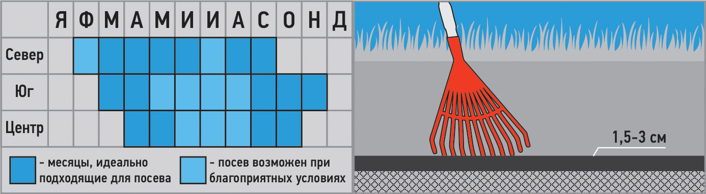 Высадка газона может осуществляться с апреля и по сентябрь. Позже сентября сеять газон нет никакого смысла, так как растение не успеет окрепнуть до холодов. Посев газона лучше всего осуществлять в теплую, сухую и не ветреную погоду.