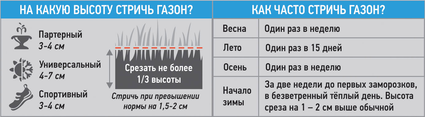 - при дальнейших стрижках скашивать газон нужно на 1/3, в таком случае высота газона будет 4-5 см