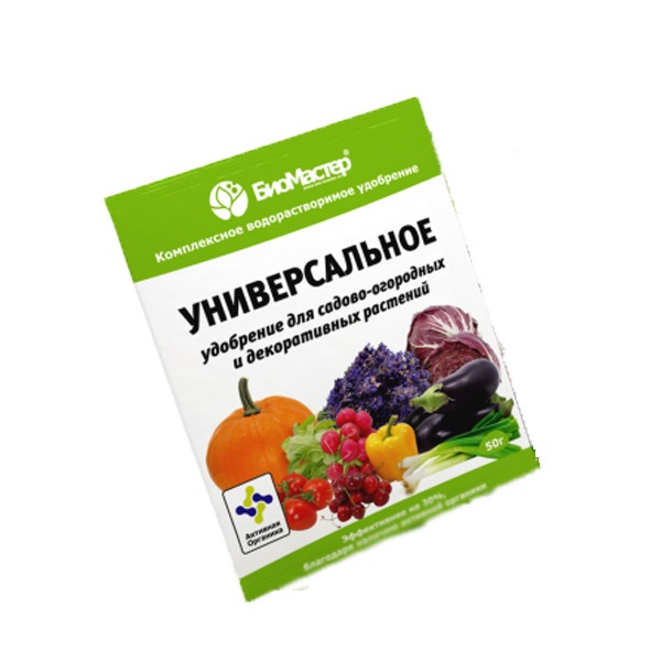 Удобрение БИОМАСТЕР Универсальное отличается высоким содержанием питательных веществ. Средство благоприятно воздействует на почвенную микрофлору, способствует развитию корневой системы растений и стимулирует их рост. Удобрение необходимо также для выработки устойчивости к различным заболеваниям, профилактики бесплодия растений и ускорения плодообразования.