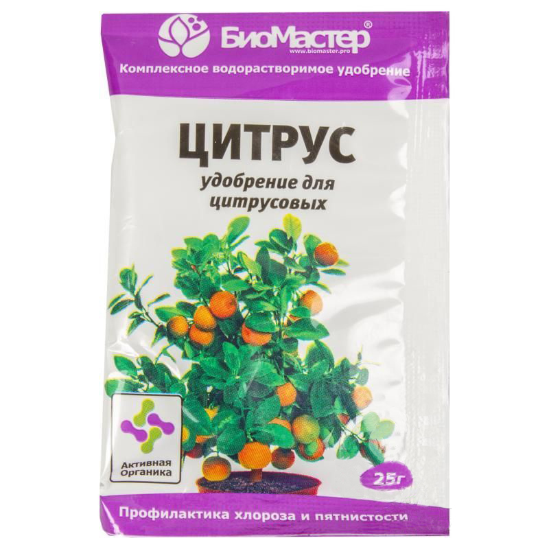 Удобрение БИОМАСТЕР Цитрус - это комплексное водорастворимое удобрение для цитрусовых растений. Используется для корневых и внекорневых подкормок. Стимулирует цветение и плодообразование, формирует устойчивость к заболеваниям и неблагоприятным природным условиям, способствует улучшению декоративных качеств цитрусовых растений.