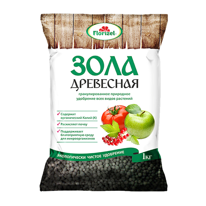 Экологически чистое, безопасное для окружающей среды традиционное удобрение. Содержит более 30 питательных макро- и микроэлементов. Действие гранулированной золы в 2-3 раза длительнее и эффективнее по сравнению с золой-порошком. Применяется для основного внесения осенью и весной, для подкормки растений и известкования кислых почв. Древесная зола не содержит хлора, поэтому её хорошо применять под растения, негативно реагирующие на хлор: землянику, малину, смородину, картофель. Капусту различных видов, зола предохранит от таких заболеваний, как кила и чёрная ножка.