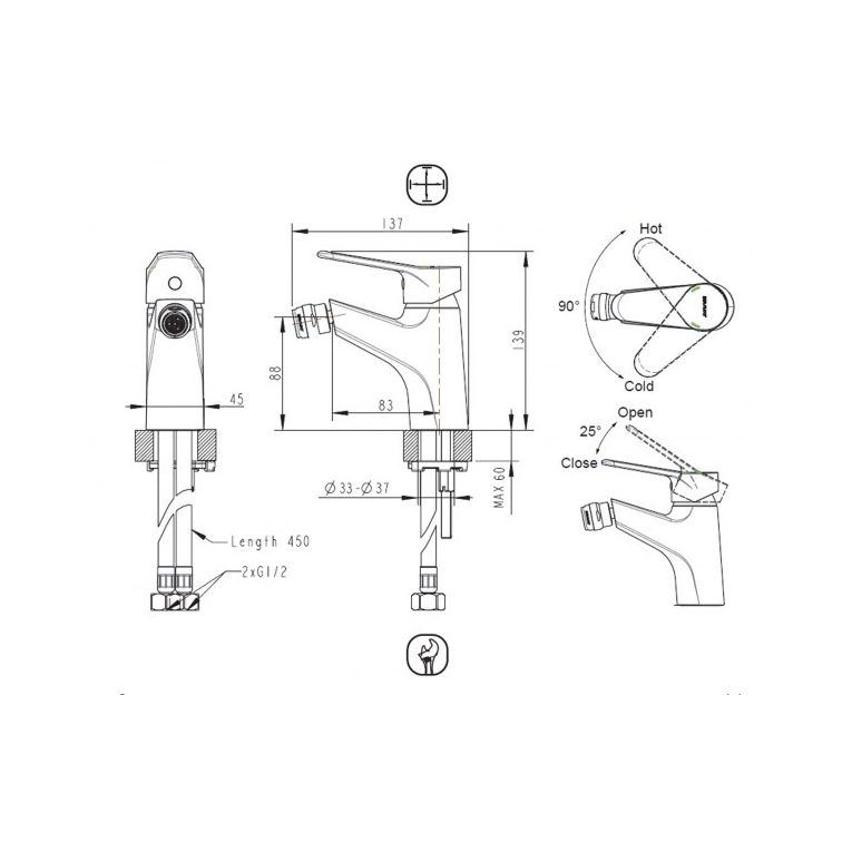 Смеситель для биде коллекции ECO, произведен из высококачественной латуни, покрытие - хром с использованием надёжного керамического картриджа Венгерского бренда Kerox. Гарантия производителя до 10 лет.