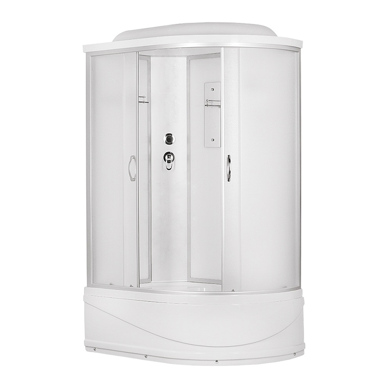 ER3512TPL-C3 - это душевая кабина без гидромассажа, в классическом стиле, ассиметричной формы (левосторонняя), с раздвижными дверьми, оборудованная системой ручного и тропического душа. Стекла закаленные, травмобезопасные, матовые, толщиной 4 мм. Поддон глубокий 42 см, на металлическом каркасе, в комплекте с сифоном. Задняя стенка - матовое стекло.