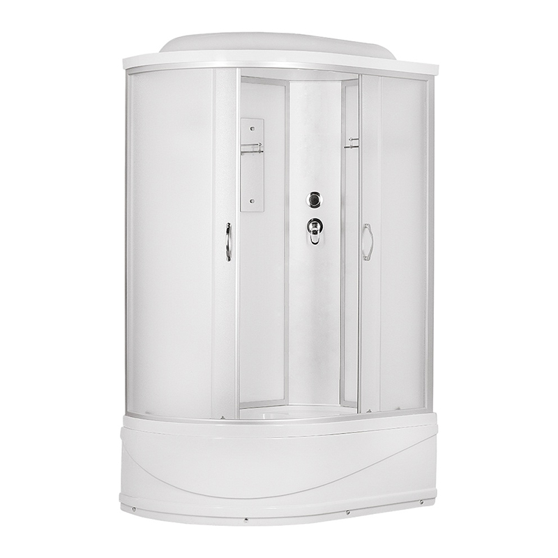 ER3512 ТPR-C3 - это душевая кабина без гидромассажа, в классическом стиле, ассиметричной формы (левосторонняя), с раздвижными дверьми, оборудованная системой ручного и тропического душа. Стекла закаленные, травмобезопасные, матовые, толщиной 4 мм. Поддон глубокий 42 см на металлическом каркасе, в комплекте с сифоном. Задняя стенка - матовое стекло.