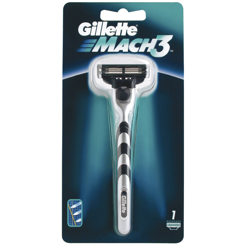 Бритва Gillette Mach3 с тремя лезвиями. Для чистого бритья с меньшим раздражением кожи. Три лезвия с покрытием, уменьшающим трение, позволяют удалять каждый волос еще чище с меньшим раздражением кожи. Острие каждого лезвия имеет уникальное покрытие DLC, позволяющее бритве скользить по лицу комфортно и с меньшими усилиями. Имеет усовершенствованную смазывающую полоску, которая теряет цвет, когда станок больше не обеспечивает оптимальный эффект, сигнализируя о необходимости сменить лезвие.