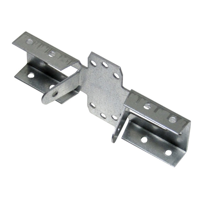 Х-кронштейн используется для быстрого и качественного соединения поперечных лагов с металлическими профильными столбами без помощи сварочного аппарата. При монтаже можно не использовать измерительные приборы, так как этот кронштейн гарантирует идеальный угол в 90⁰. Так же можно неоднократно и в кратчайшие сроки монтировать и разбирать конструкции. Изготавливается из оцинкованной стали для дальнейшей покраски в цвет.