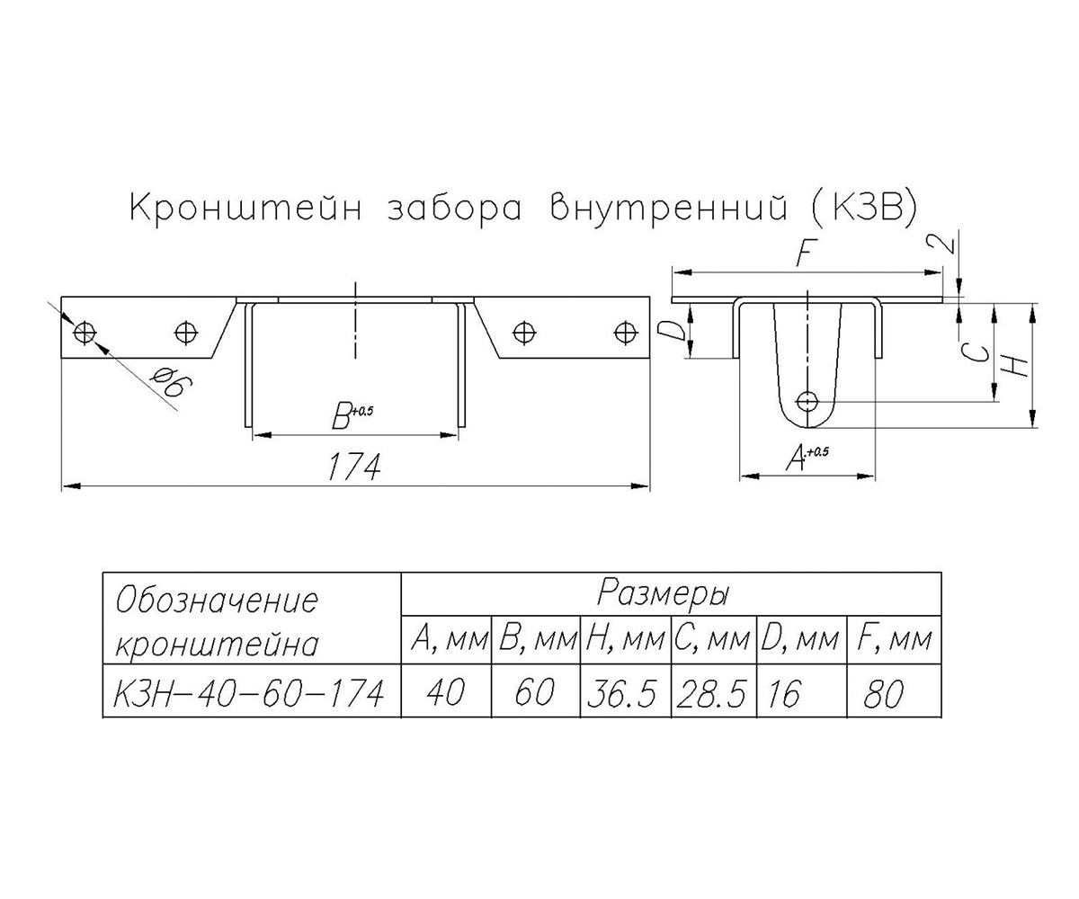 Кронштейн забора NOEZ КЗВ-40-60-174 цинк
