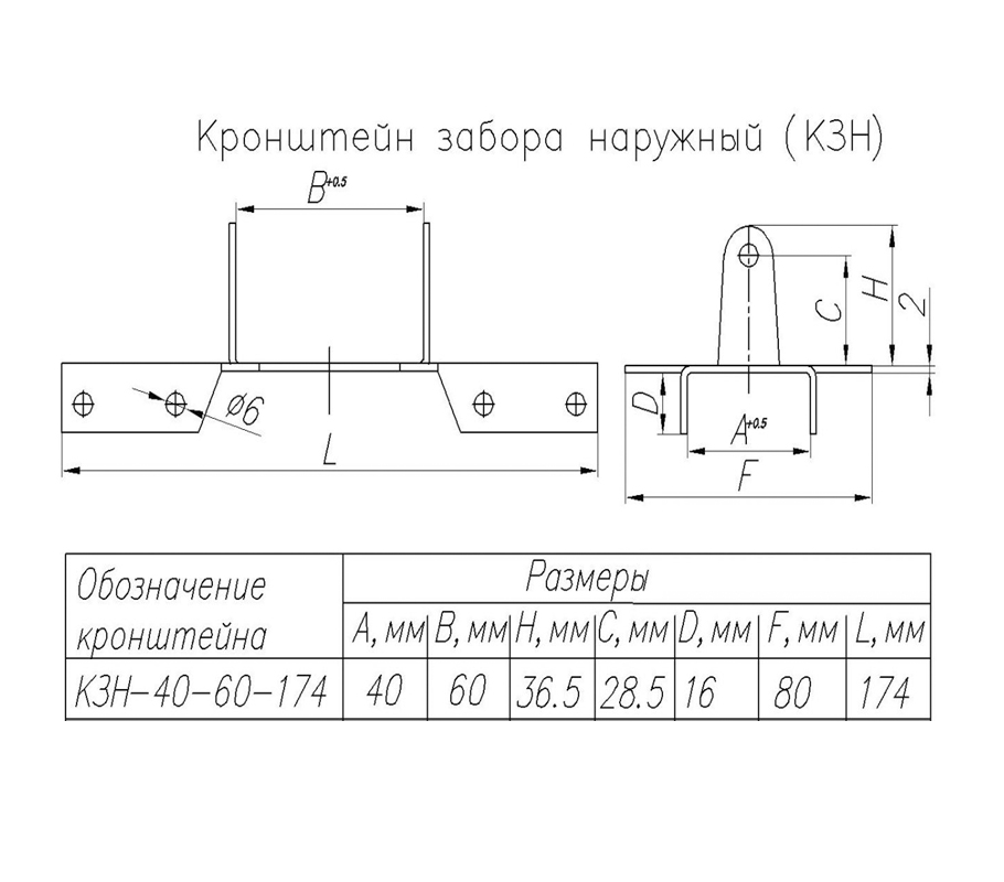 Кронштейн забора NOEZ КЗН-40-60-174 цинк