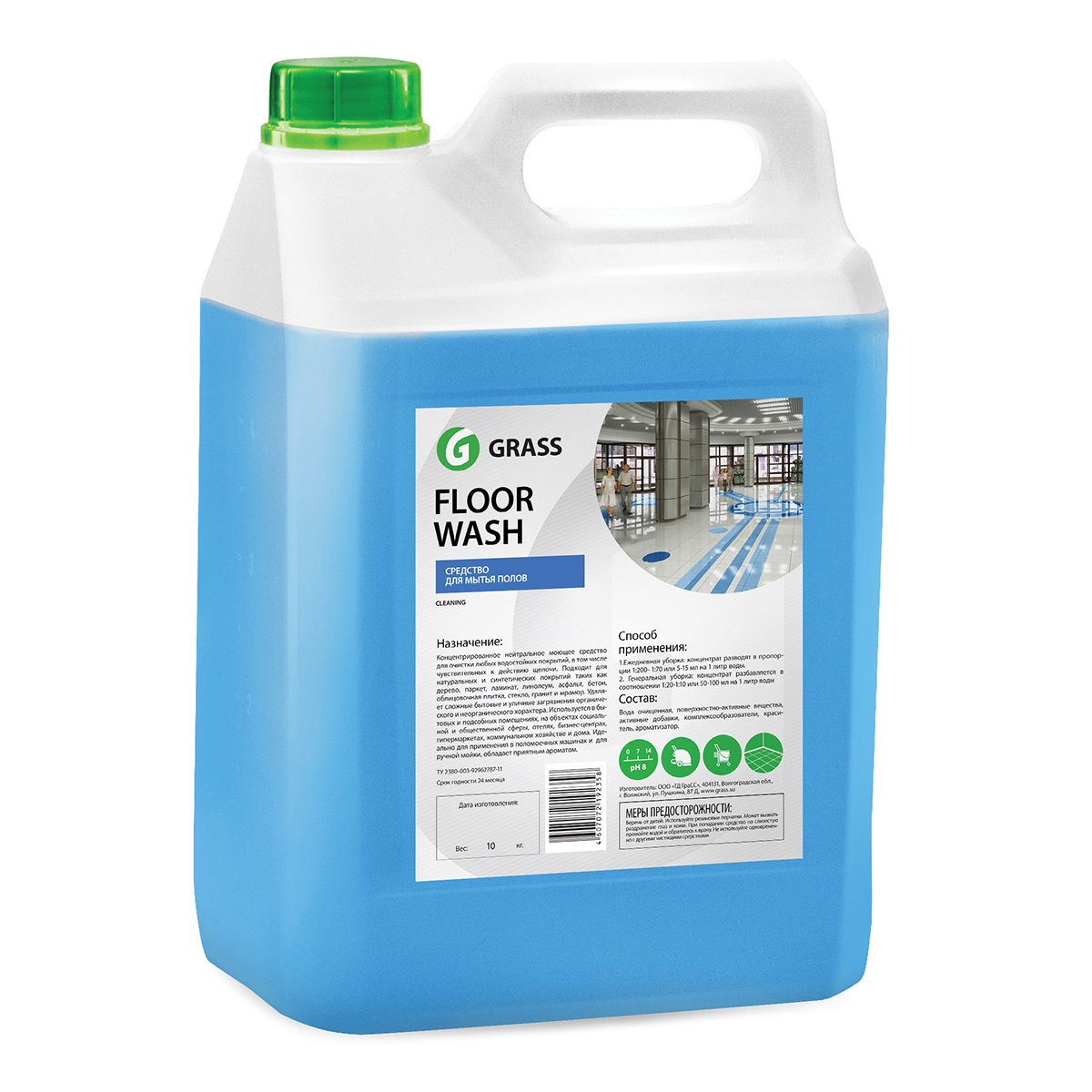 Средство для мытья полов Floor wash – это концентрированное моющее средство, которое не содержит щелочи. Средство предназначено для применения в автоматических поломоечных машинах и ручной мойки полов, обладает приятным ароматом. Подходит для очистки любых водостойких покрытий, в том числе чувствительных к действию щелочей (линолеум, каучук, дерево, паркет, ламинат, мрамор) от органических загрязнений, животных жиров, растительных масел и других загрязнений. Концентрат растворяется из расчета 5–10 г/л воды.