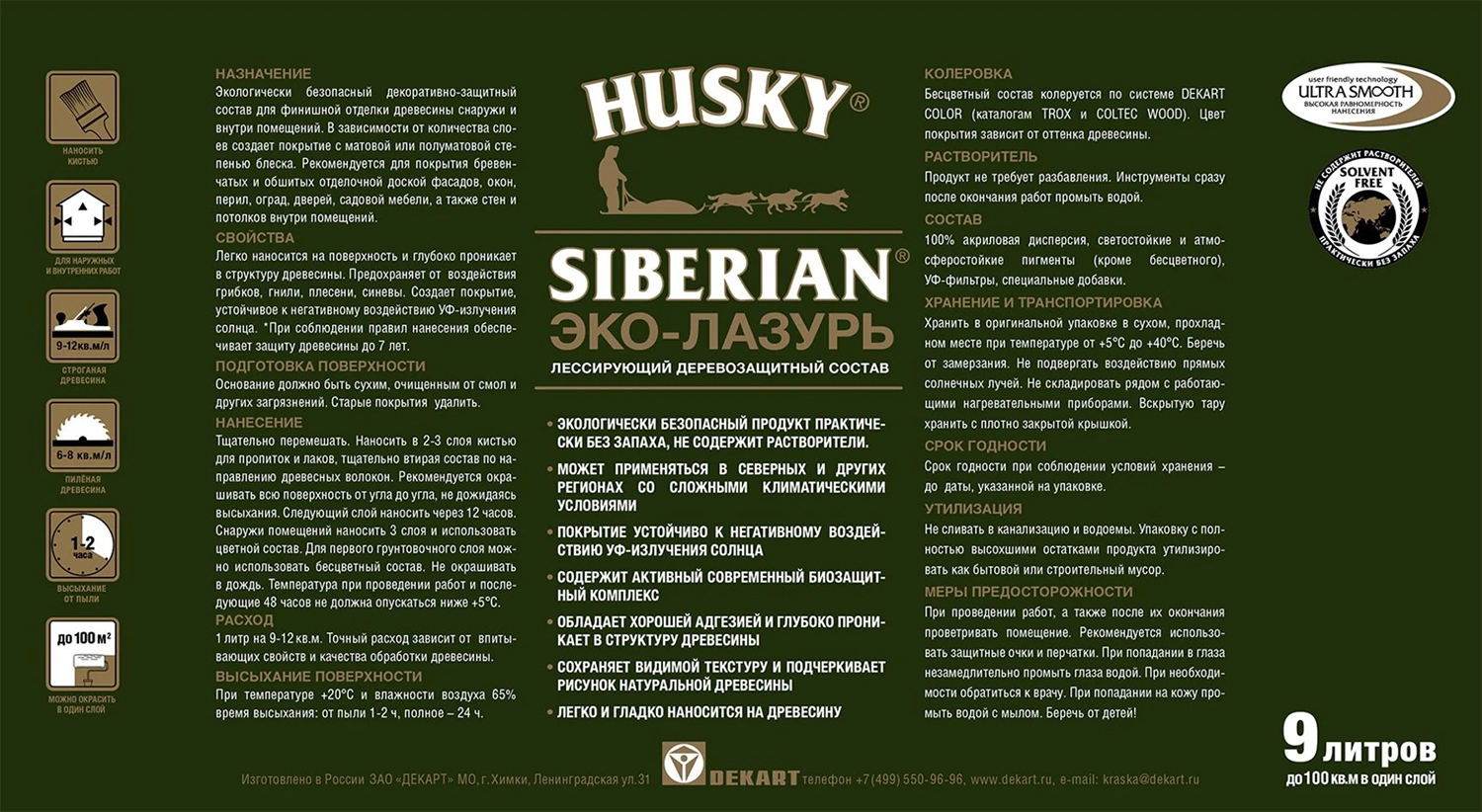 Антисептик HUSKY Siberian Эко-лазурь дуб светлый 9л