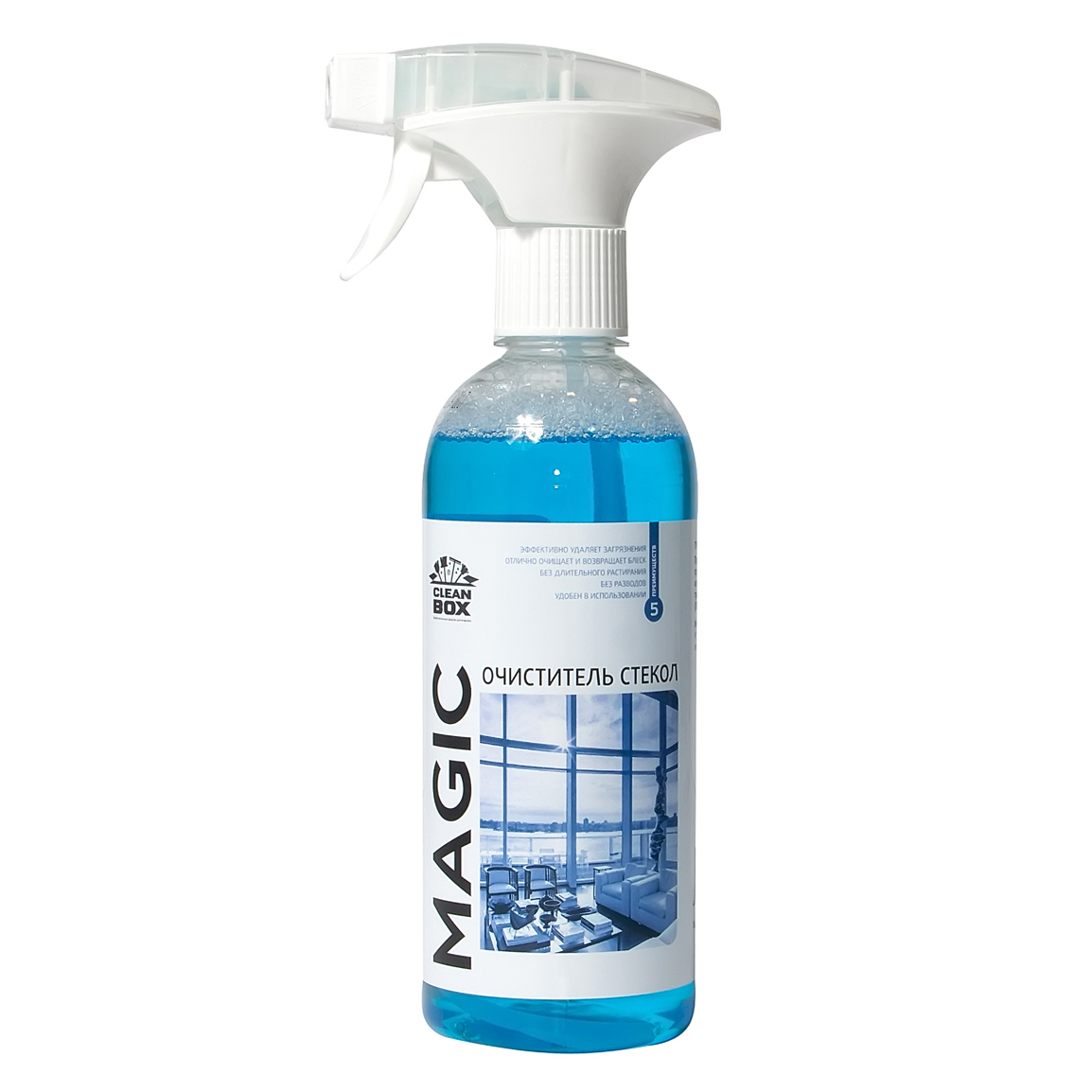 Чистящее средство для стекол Magic – это универсальный концентрированный очиститель для стекол, зеркал, пластиковых поверхностей, жидкокристаллических дисплеев и так далее. Средство создает активную эмульсию, которая отлично справляется с грязью, жиром, отложениями смога и дыма. Позволяет получить чистую и блестящую поверхность без длительного растирания.