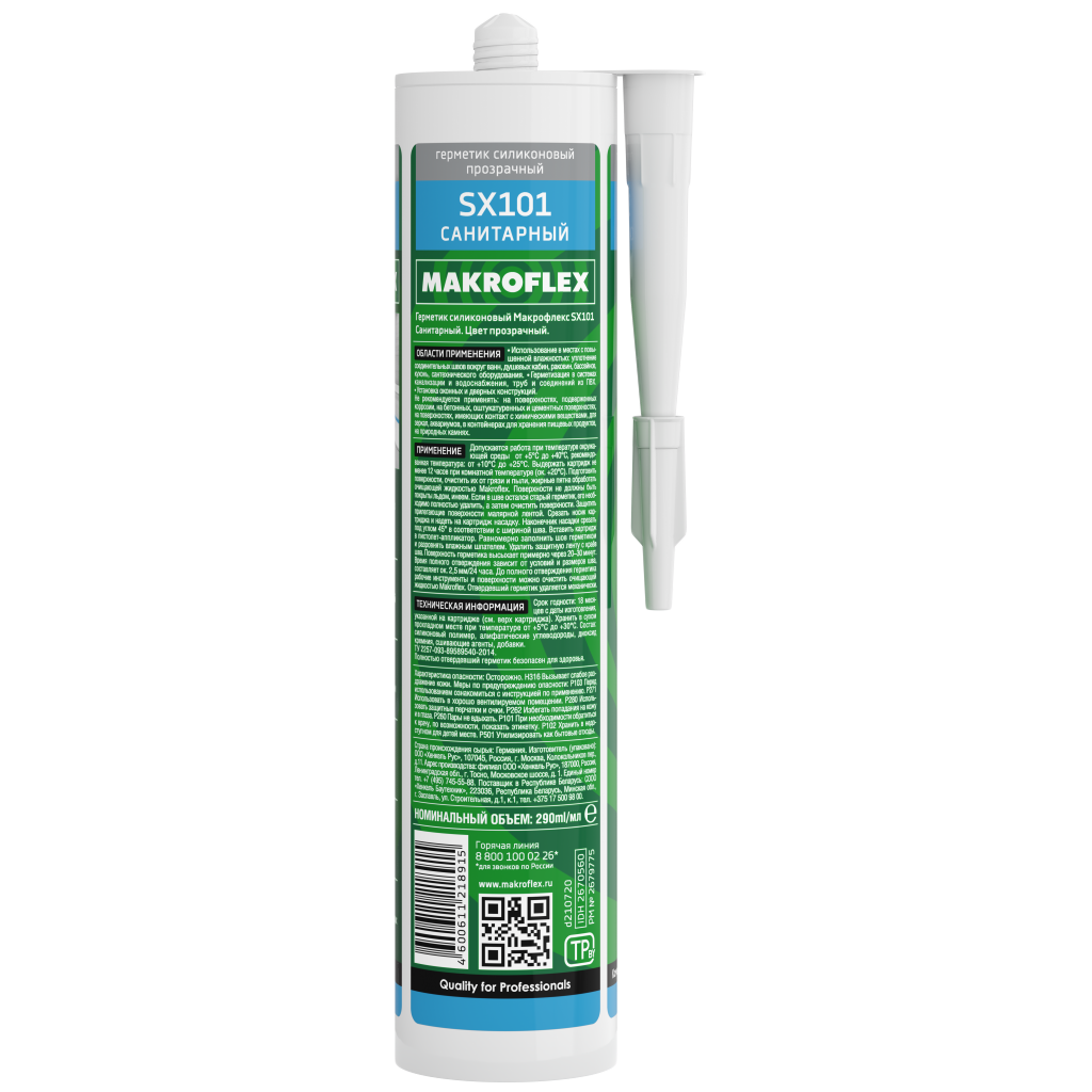 Makroflex SX101 Санитарный – высококачественный силиконовый герметик с фунгицидными добавками, предотвращает образование плесени, идеален для помещений с повышенной влажностью.
