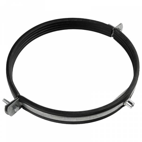 Оцинкованные хомуты с резиновой прокладкой позволяют не только уменьшить вибрацию, которая передается от воздуховода на крепеж, но и значительно снизить общий уровень шума в помещении, где проходит вентиляционная трасса.