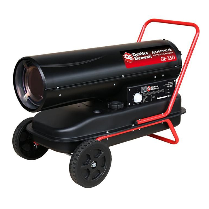 Тепловая пушка QE-35D – мощный профессиональный дизельный нагреватель с прямым нагревом и микропроцессорным управлением. Модель предназначена для обогрева значительных площадей складского и производственного назначения с хорошей вентиляцией. Пушка сконструирована так, что может работать и на керосине, что делает её еще более универсальной. Наличие встроенного термостата позволяет поддерживать заданную температуру в помещении в автоматическом режиме, а с помощью цифрового дисплея можно контролировать заданные параметры. Бак увеличенного объема обеспечивает длительную работу.