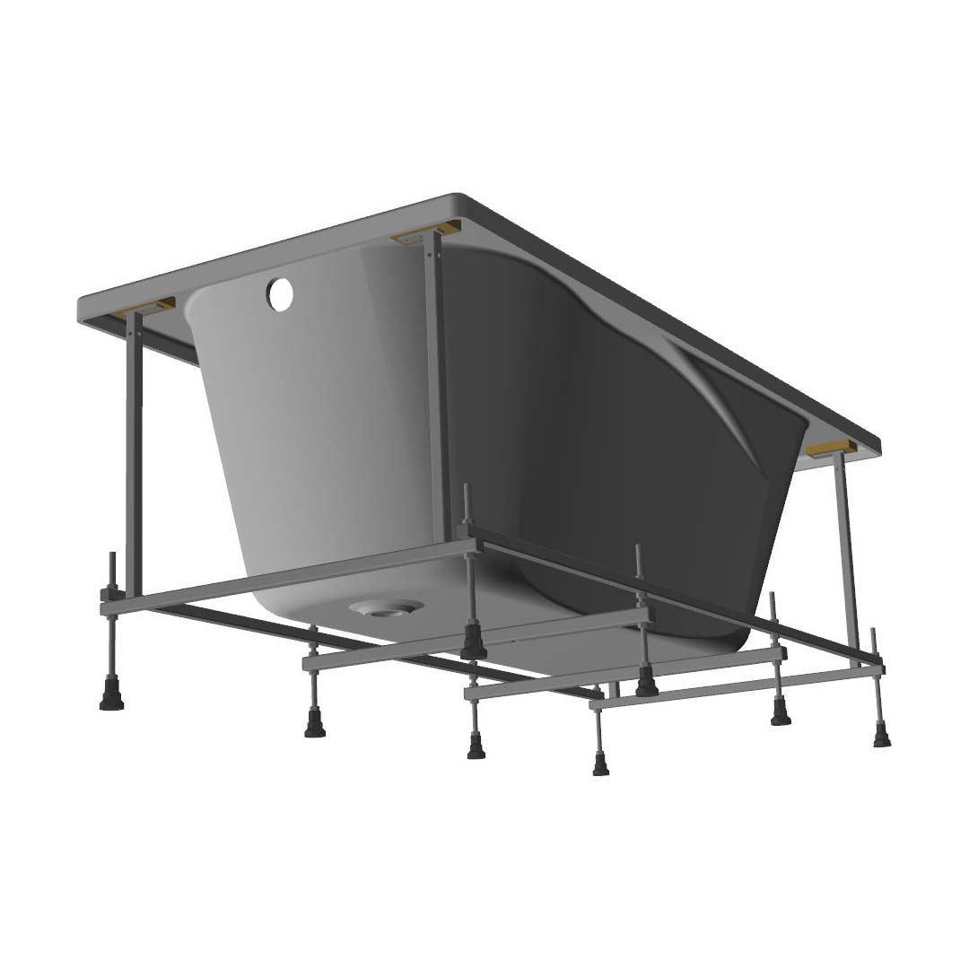 Каркас изготовлен из специального стального усиленного профиля, что придает ванне, как целому изделию, максимальную прочность и лёгкость конструкции в целом. Вся поверхность каркаса и регулируемых ножек покрыта порошковой краской, что обеспечивает защиту от коррозии.