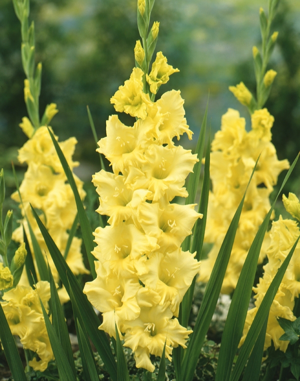 Гладиолус – клубнелуковичное растение высотой 50-150 см с вертикальным стеблем и линейными или мечевидными листьями. Цветки воронковидные, собраны в колосовидное соцветие до 80 см длиной, самых разнообразных окрасок, могут быть простыми или гофрированными.