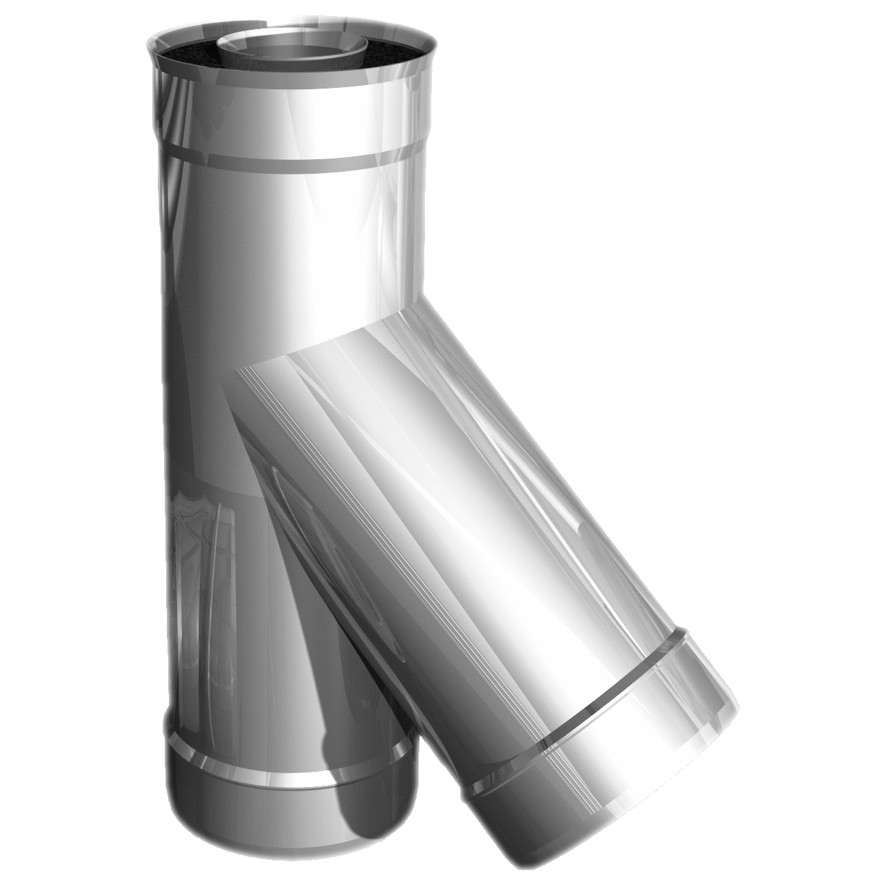 Сэндвич-тройник предназначен для изменения направления двустенного дымового канала на угол 135°.