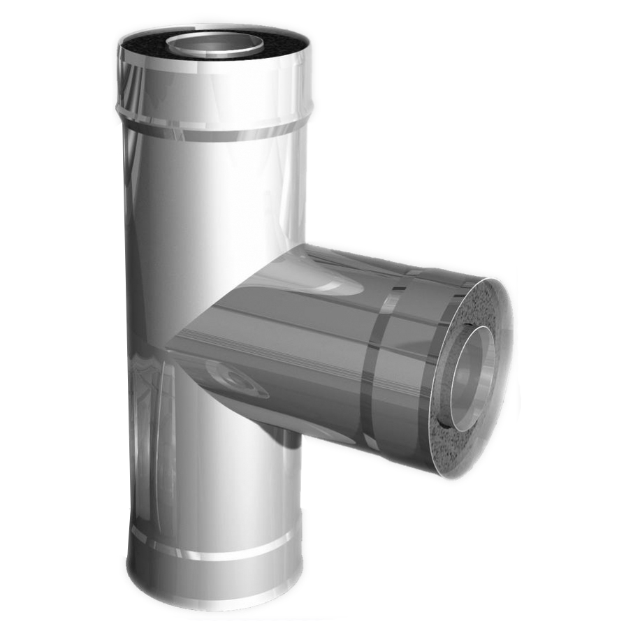 Сэндвич-тройник предназначен для изменения направления двустенного дымового канала на угол 90°.