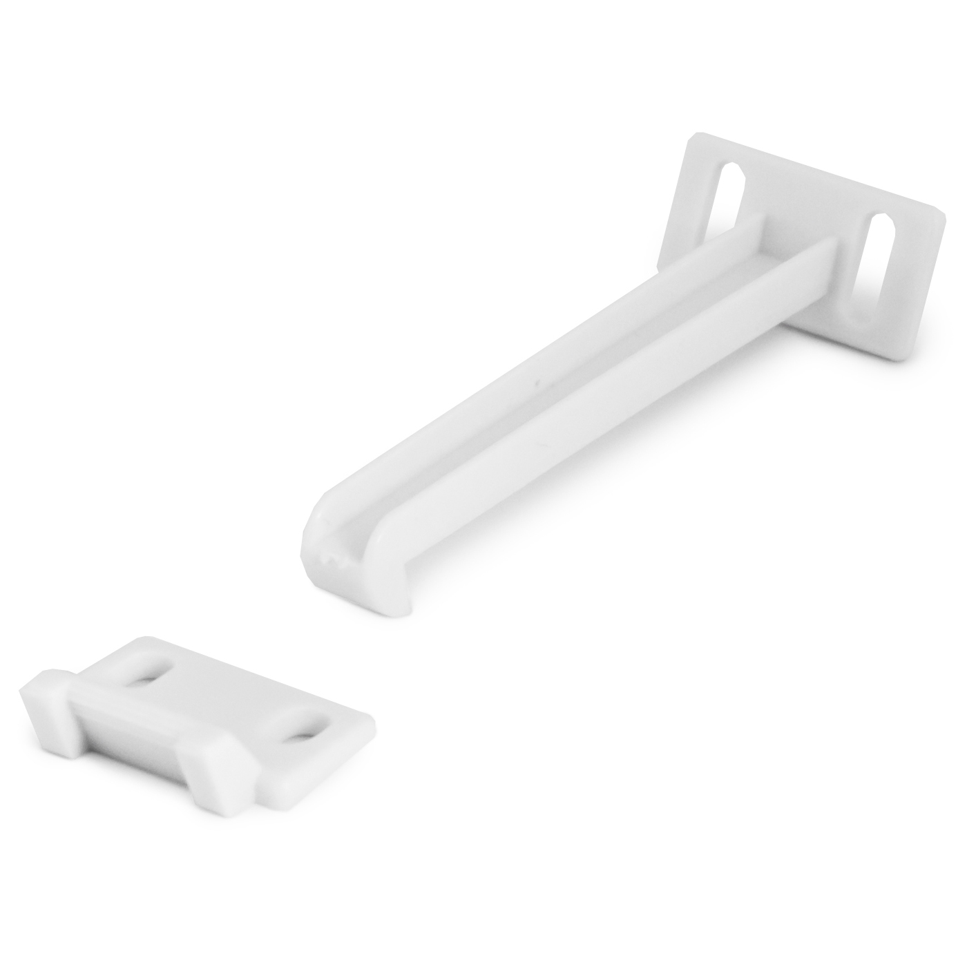 Устанавливается внутри выдвижных ящиков. Не позволяет малышу открыть ящики, особенно актуально на кухне, где хранятся острые предметы. Фиксатор крепится внутри ящика, ограничивая диапазон открывания до 4 см. Крепится с помощью саморезов (входят в комплект). Ящик с блокировкой очень просто открыть взрослому, но трудно ребёнку. Надёжно блокирует от проникновения домашних животных.