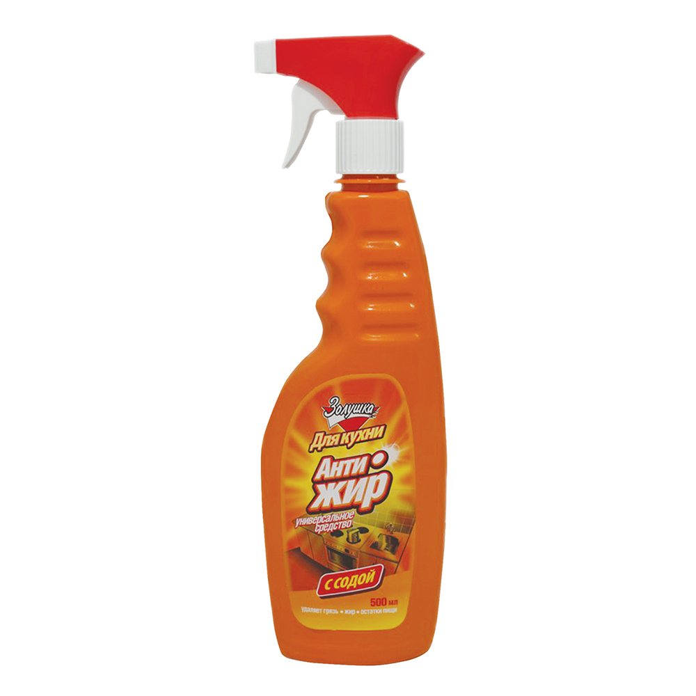 Золушка Антижир – высокоэффективное чистящее средство для устранения жировых, засохших и других трудновыводимых загрязнений различных поверхностей на кухне - плит, столешниц, посуды, духовок и бытовой техники. Оно отлично справляется со всеми типами жировых отложений, начиная от пролитого масла, заканчивая пригоревшими остатками пищи на гриле. Средство содержит мощный натуральный очиститель - соду, быстро и безопасно удаляющую загрязнения.
