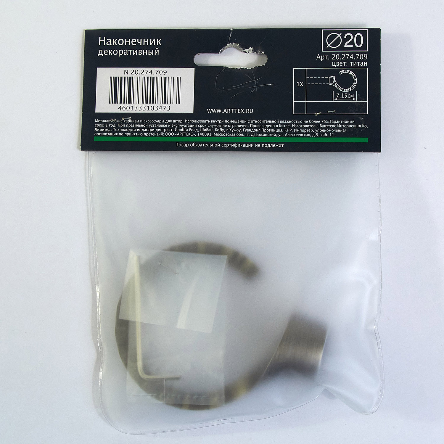 Наконечник представляет собой вспомогательный элемент для создания комплексной карнизной системы со штангой диаметром 20 мм. Используя наконечник, можно быть всегда уверенным в том, что край шторы или занавески не упадет вниз с карниза, а все тканевые петли будут придерживаться зафиксированного положения.