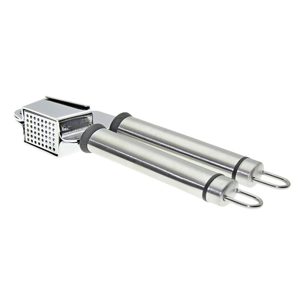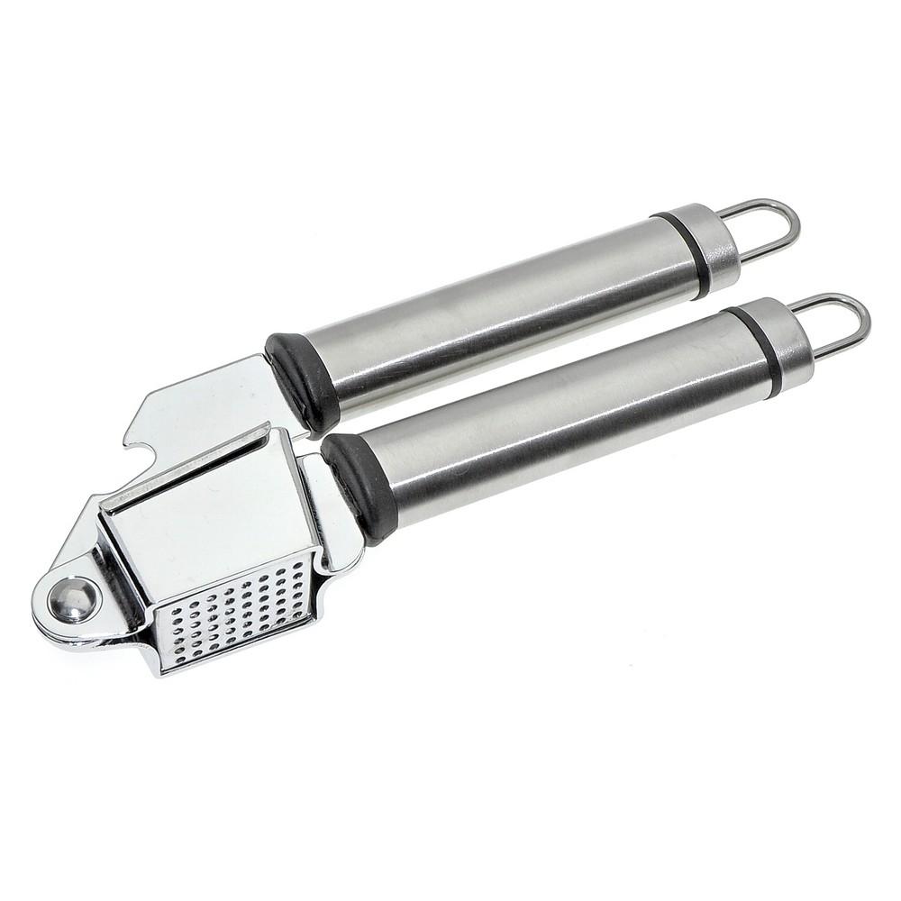Измельченный чеснок — неотъемлемая часть многих блюд, он придает особый вкус продуктам и их сочетаниям. Для измельчения зубчиков традиционно используется чесноковыжималка — специальный пресс для чеснока. Изделие состоит из чаши с отверстиями и пресса, имеет две удобные ручки. На ручках есть петли, за которые инструмент можно повесить на крючки. Изделие изготовлено из коррозионностойкой (нержавеющей) стали. После применения рекомендуется мыть мягкой щеткой с использованием жидких моющих средств.