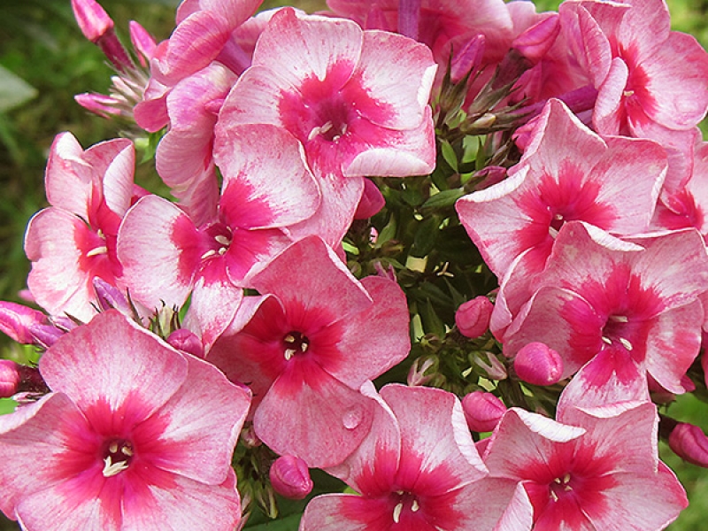 Флоксы - растения травянистые многолетние. Стебли прямостоячие, восходящие или ползучие, от 10-20см до 120-150см высотой. Листья цельнокрайные, сидячие, расположены супротивно, иногда в верхней части стебля — в очередном порядке, ланцетные, овально-ланцетные, яйцевидно-удлиненные. Цветки душистые, белые, розовые, красные, сиреневые, алые, голубые, карминовые с глазком в центре, 2,5-4см в диаметре, обычно собраны в щитковидные или метельчатые соцветия различного строения и величины, реже одиночные.