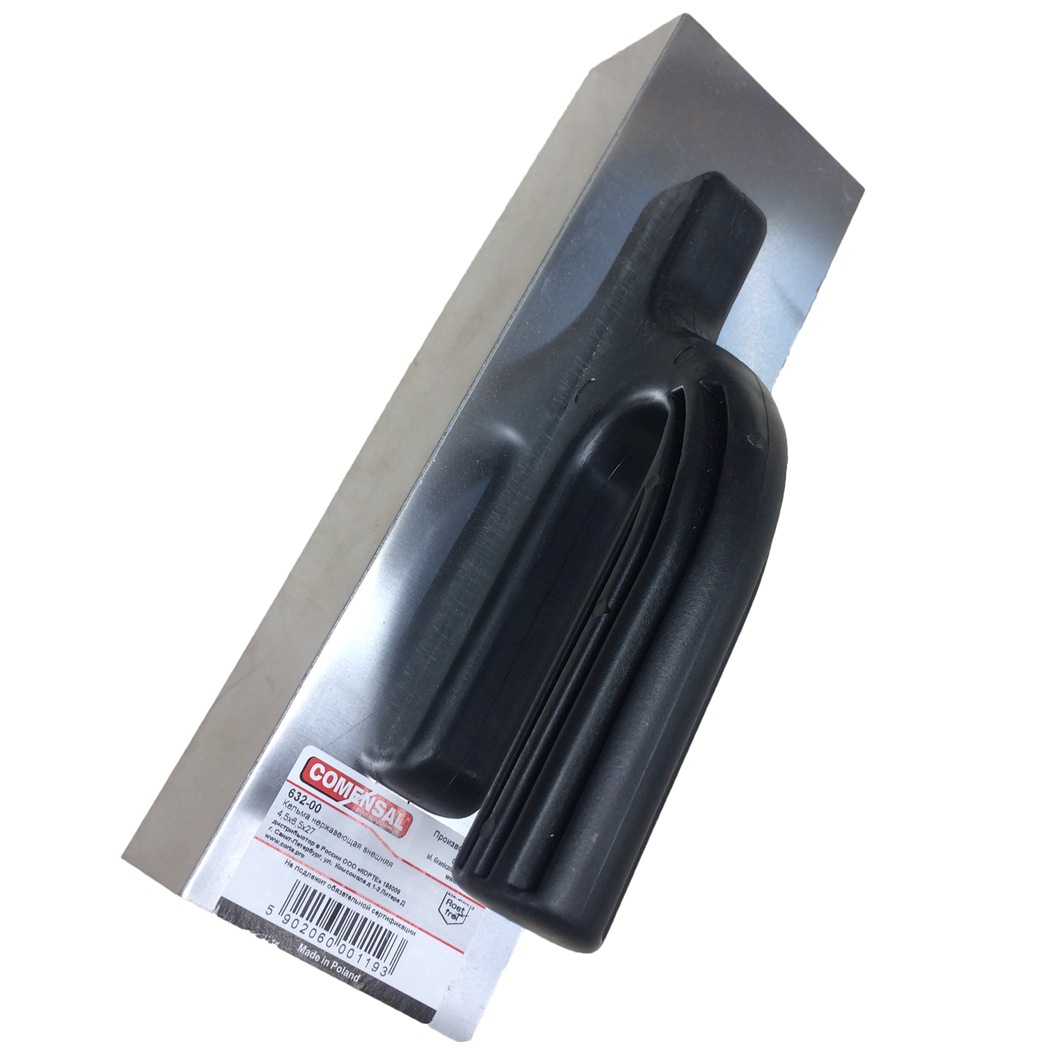 Штукатурная гладилка применяется для осуществления работ по качественному и равномерному распределению строительных растворов по поверхности. Такой гладилкой устраняются неровности, швы и прочие дефекты, применяется для формирования углов. Востребована при отделке помещений под покраску, так как позволяет получить эффект, схожий с железнением (напылением цемента на штукатурку).