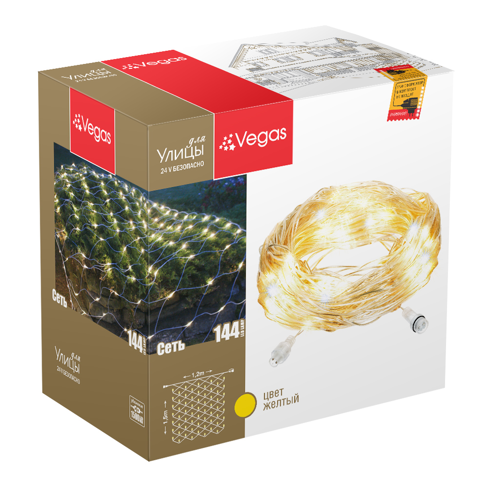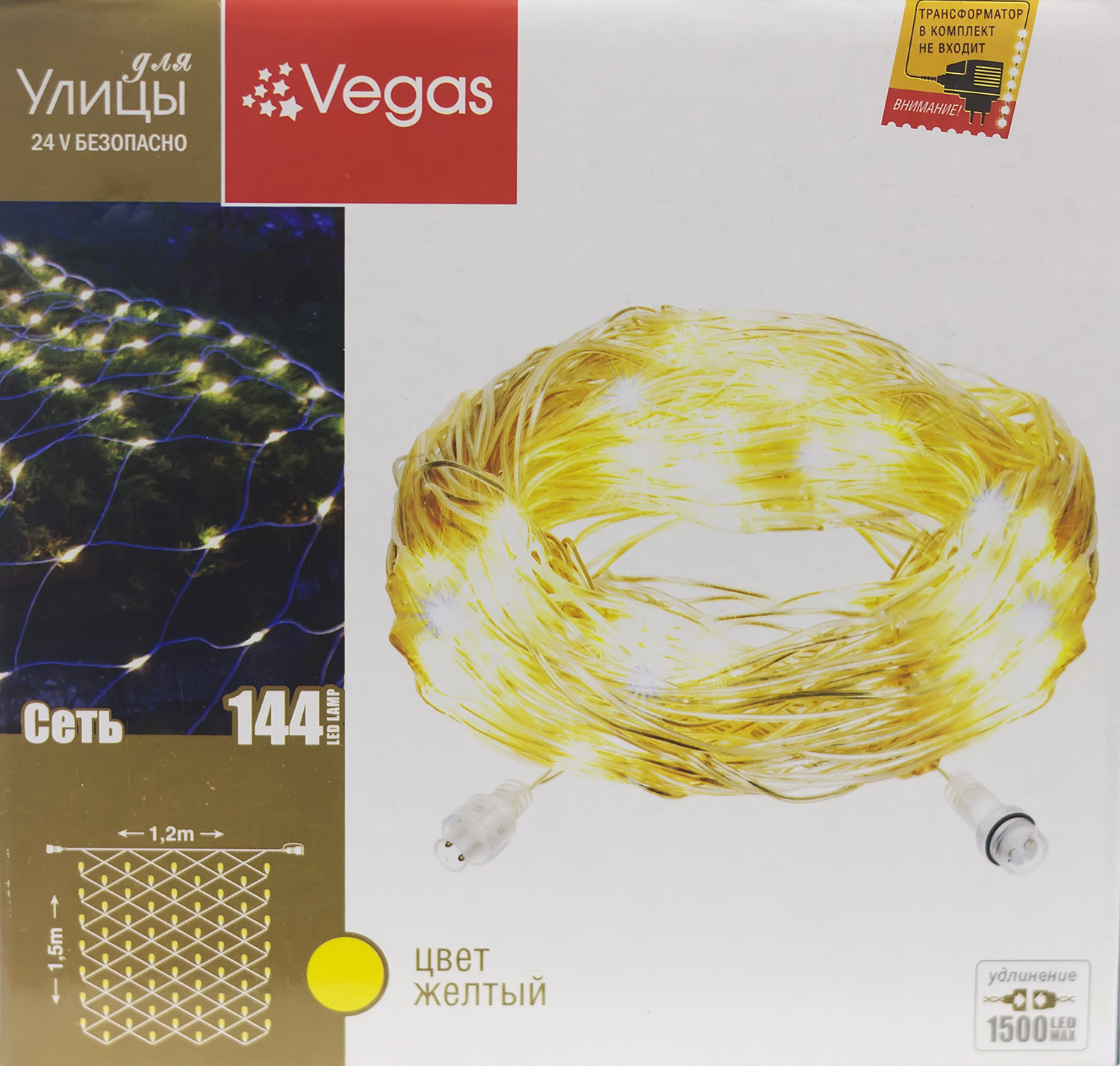 Электрогирлянда VEGAS Сеть 144 ламп желтый свет 120см