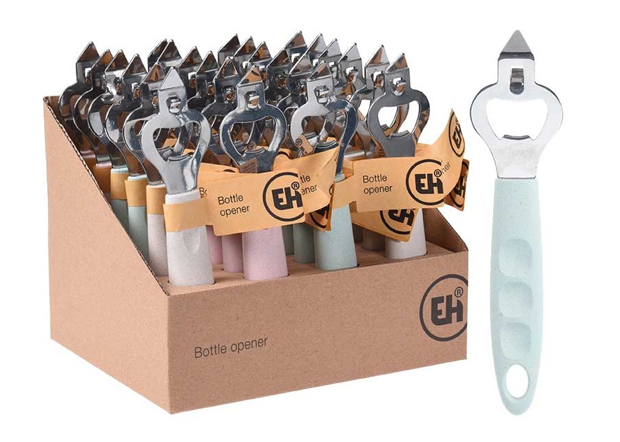 Открывалка - это кухонное приспособление, предназначенное для удобного и быстрого снятия металлических пробок с бутылок и банок. Изготовлена данная открывалка из нержавеющей стали и пластмассы. Она не имеет каких либо подвижных частей, а значит она более надежная и долговечная. Любой хозяйке будет приятно держать его в руках. Товар соответствует мировым стандартам качества.