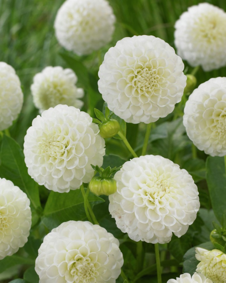 Сноуфлейк - высота растения 80 см. Цветы- снежно-белые помпоны, диаметром 6 см. Цветет обильно. Идеален для срезки.