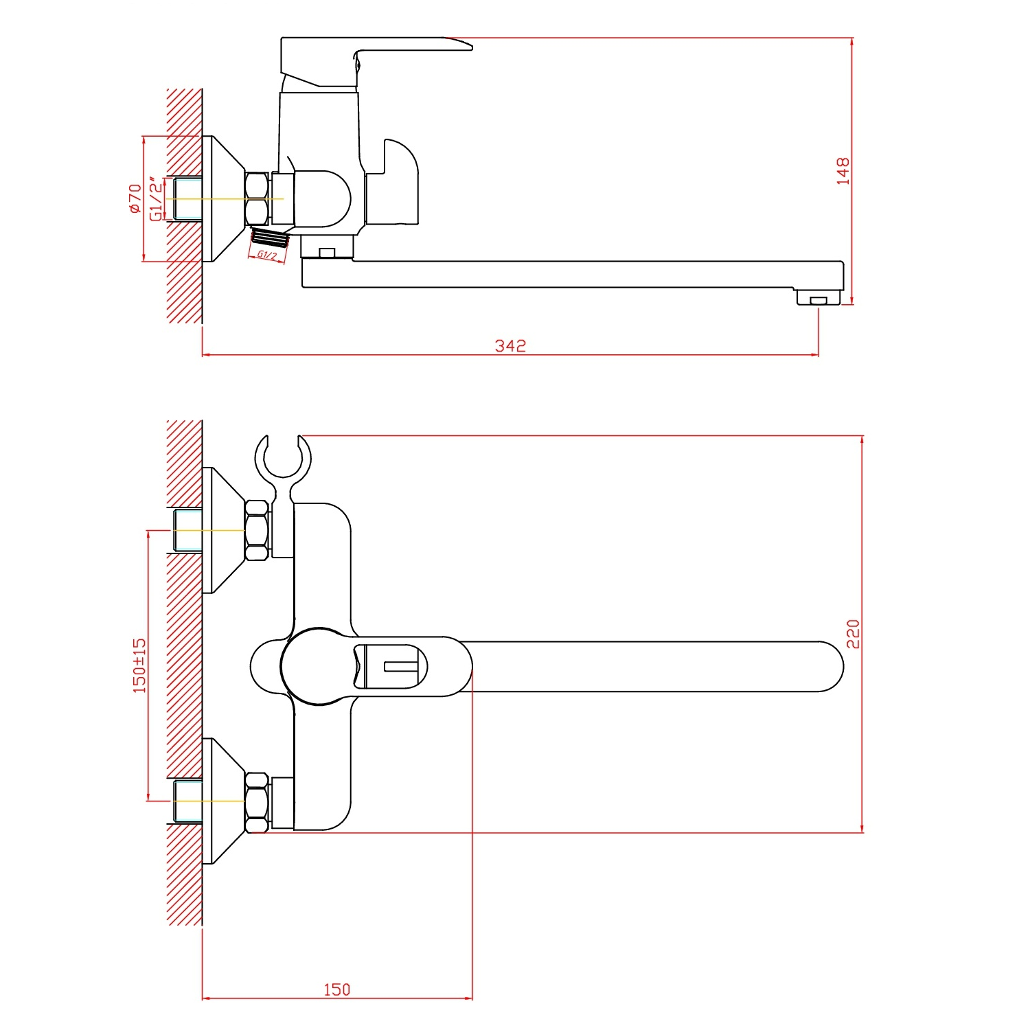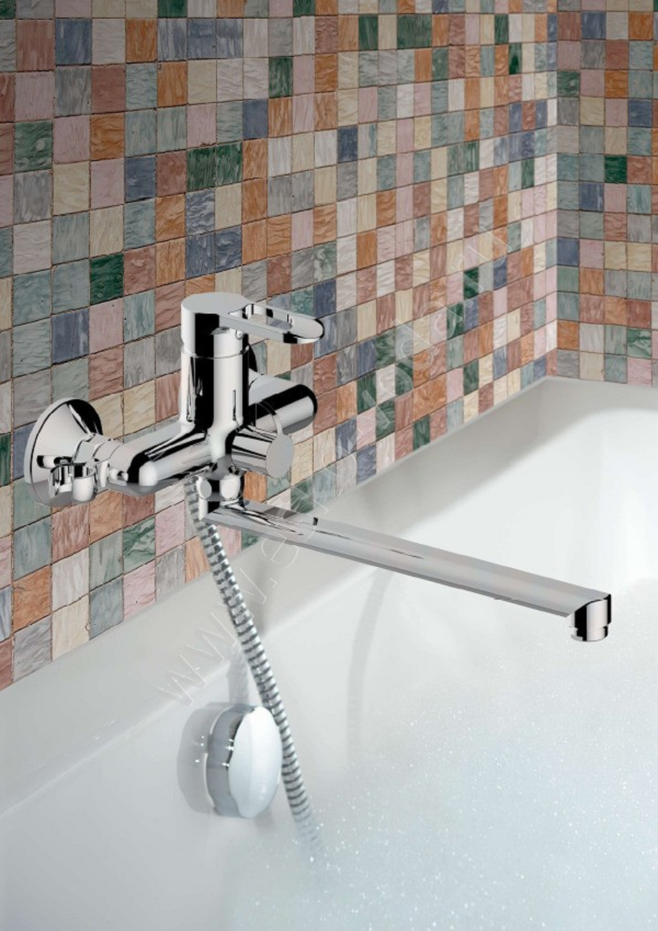 Смеситель предназначен для настенного монтажа в ванной комнате. Изделие жестко крепится непосредственно к водопроводным трубам. Необходимые для установки эксцентрики и отражатели предусмотрены в комплекте.