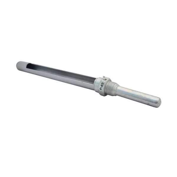 Оправа для термометра необходима для защиты стеклянного термометра от механических повреждений. Оправа состоит из двух частей. Верхняя имеет смотровое окно и при помощи двух винтов соединяется с нижней частью, которая монтируется в стальную бобышку БП1, привариваемую к трубопроводу. Длина ножки - 63 мм. Диаметр резьбы - М27х2.