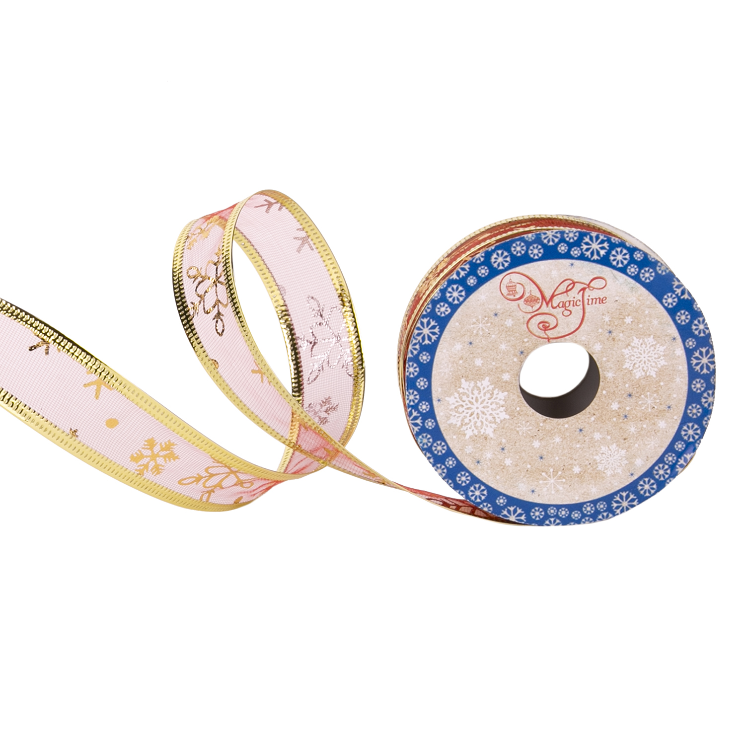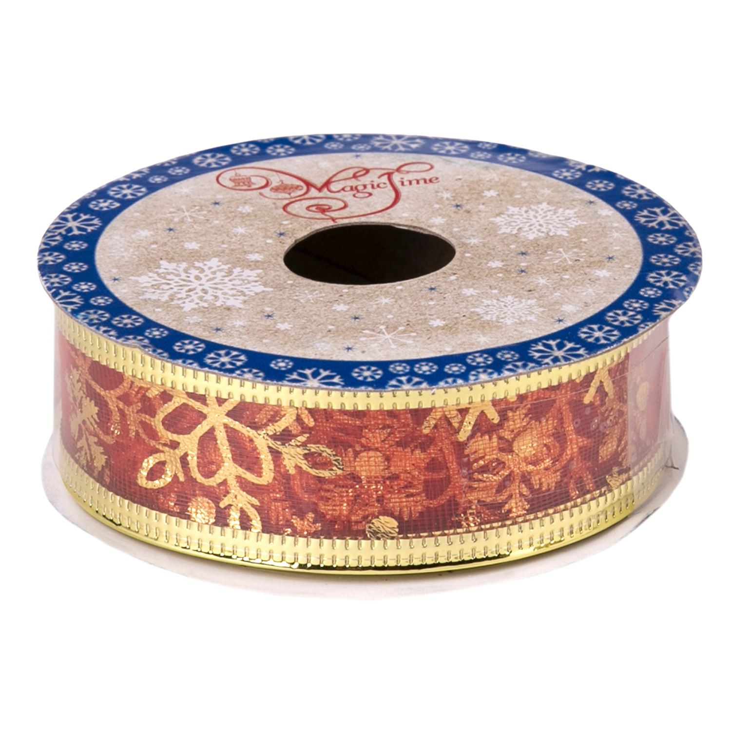 Лента новогодняя MAGIC TIME Снежинки красное золото 78656 270x2,5x0,01см