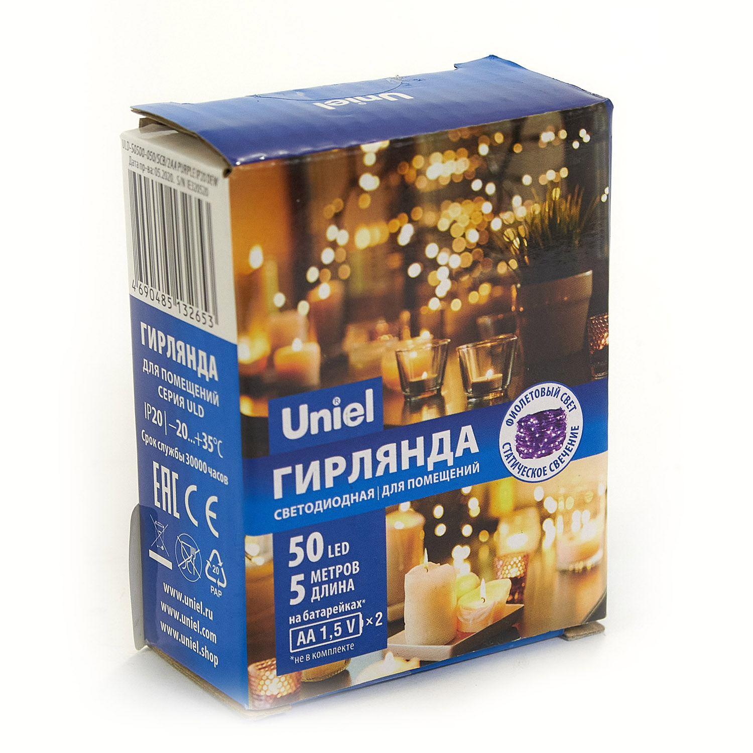 Гирлянда UNIEL ULD-S0500-050/SCB/2AA 50 ламп фиолетовый свет 500см