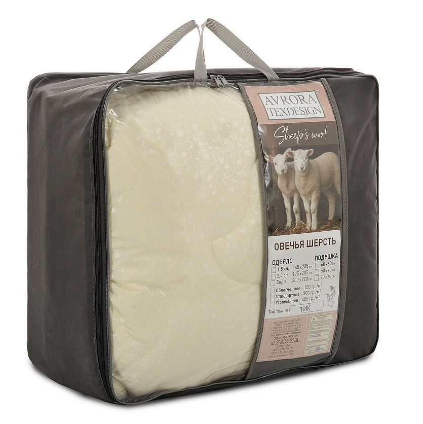Наполнитель Овечья шерсть обеспечивает комфортное сухое тепло в любой сезон. Он не только удерживает тепло, но и прибавляет до 0,5о к температуре спящего человека. Кроме этого, природные особенности шерсти прекрасно обеспечивают свободную циркуляцию воздуха и не задерживают влагу.