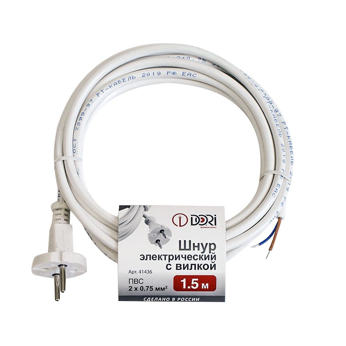 Шнур с вилкой DORI ПВС 2х0,75мм² 1,5м