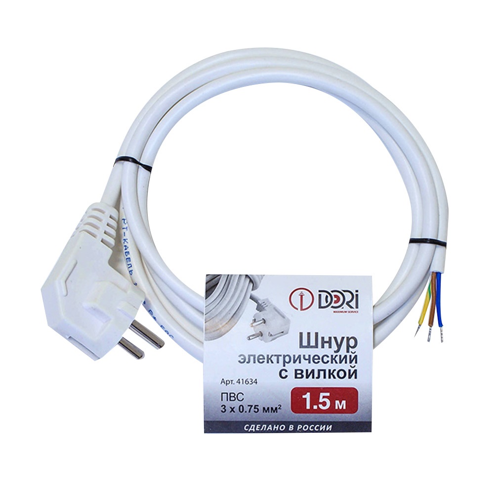 Шнур с вилкой DORI ПВС 3х0,75мм² 1,5м