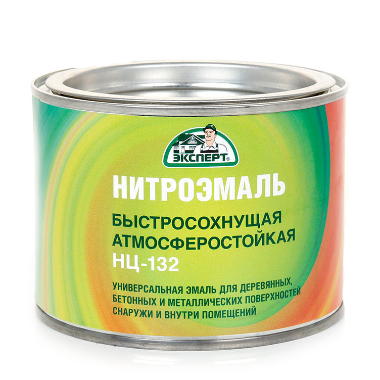 ЭКСПЕРТ Эмаль НЦ 132 М – Быстросохнущая эмаль для окраски металлических, деревянных и бетонных поверхностей. Нитроцеллюлозная эмаль применяется для окрашивания деревянных, оштукатуренных и предварительно загрунтованных металлических поверхностей, изделий и оборудования, эксплуатирующихся в атмосферных условиях и внутри помещений.
