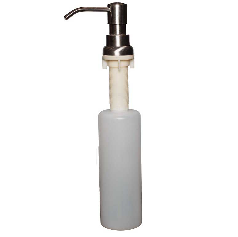 Дозатор для жидкого мыла врезной применяется на кухне или в ванной для экономного расходования моющего средства. Аксессуар встраивается в раковину или в столешницу возле нее. Емкость со средством скрыта под поверхностью, сверху остается лишь носик устройства. Корпус емкости под моющее средство и трубка подачи моющего средства выполнены из пластика, что исключает возможность коррозии и разъедания любым моющим средством, применяемым в быту. Дозатор можно заправить не только мылом, но также гелем для мытья посуды.