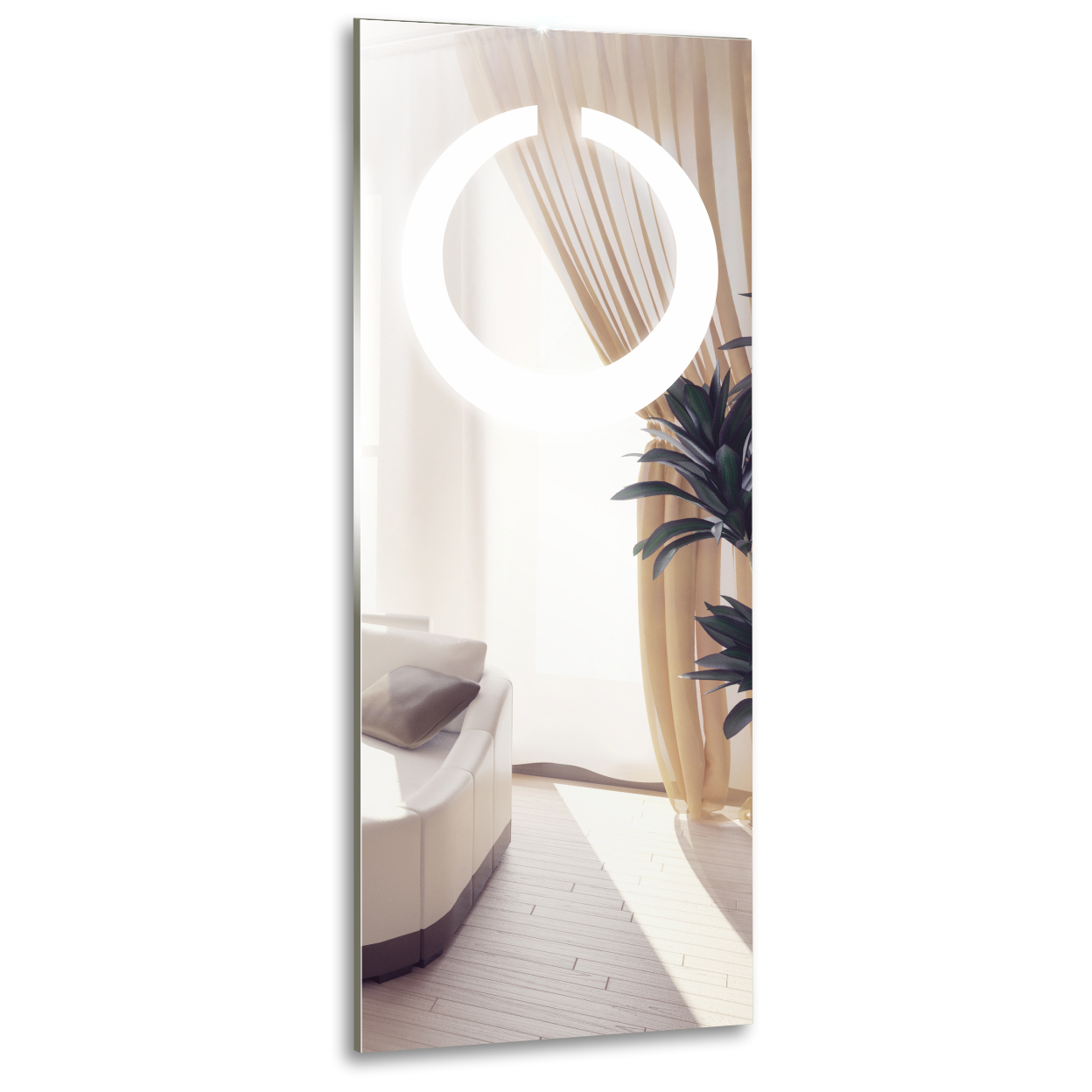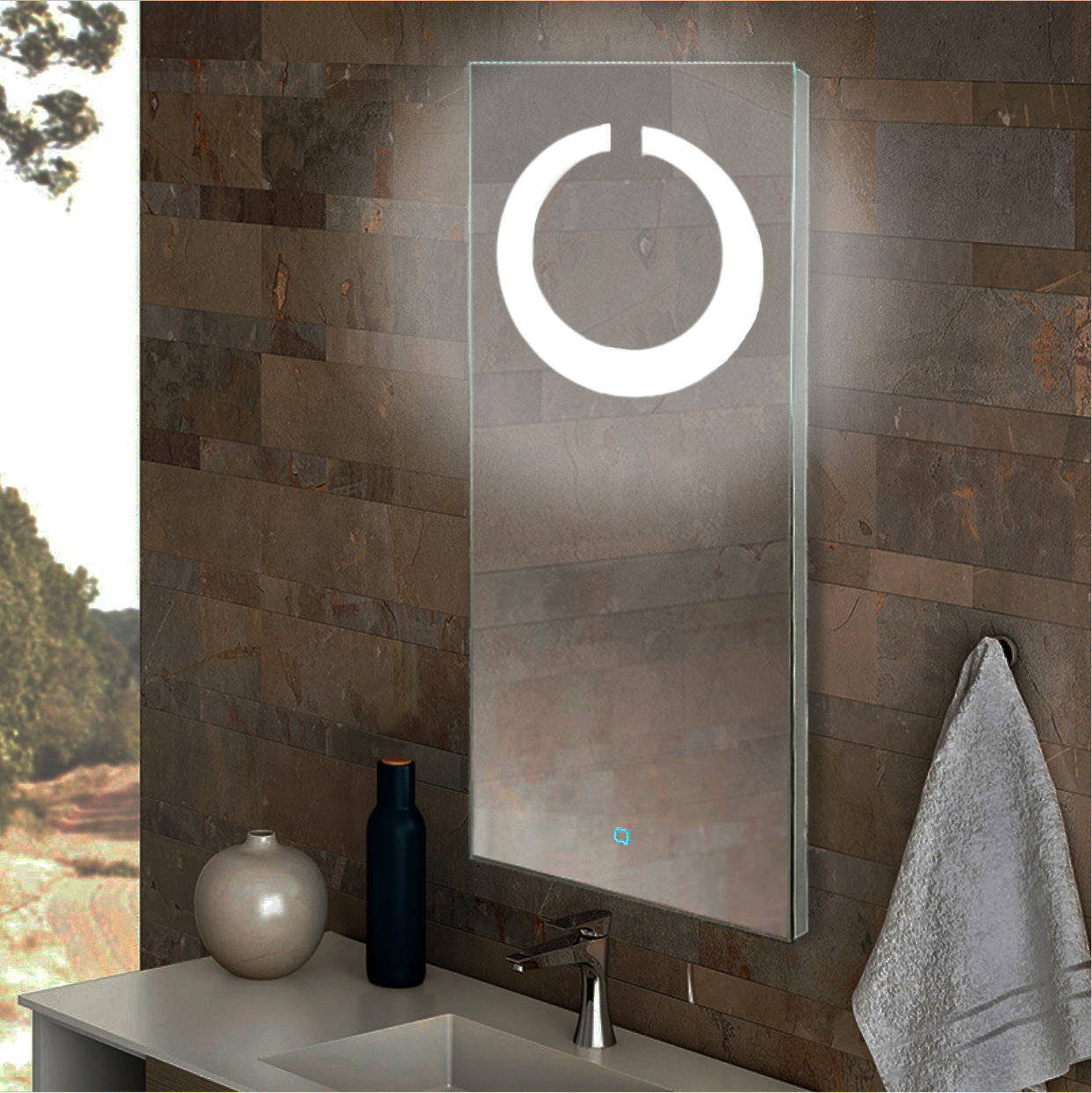 Зеркало с LED-подсветкой. Модель сделана из стекла высшего качества M0 (влагостойкое, минимальные оптические искажения). LED-подсветка выдерживает до 50 тыс. часов работы в непрерывном режиме. Изделие оснащено сенсорным выключателем с функцией плавного диммирования, с запоминанием последнего значения. Короткие касания светящейся области включают/выключают подсветку, длительное касание меняет яркость свечения. Экологически чистый продукт выполненный по стандартам ЕС.