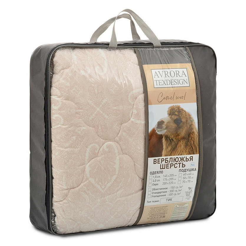 Перейти в каталогВерблюжья шерсть обладает удивительным свойством терморегуляции, потому что верблюды живут в пустынях и степях, где суточные колебания температуры могут составить до 40°C. Кроме того, шерсть верблюда содержит большое количество ланолина — животного воска, который снимает боль с суставов и мышц, является природным антисептиком. Одеяло из верблюжьей шерсти подарит вам целебное сухое тепло и здоровый, крепкий сон. Обратите внимание на состав! Для придания объёма в шерстяной наполнитель иногда добавляют синтетические волокна.