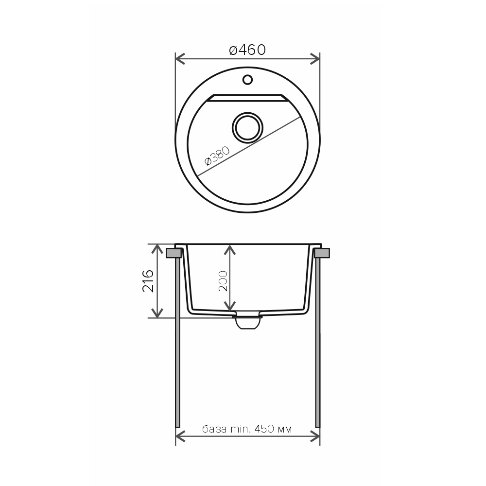 Круглая форма позволяет более практично расходовать рабочую поверхность столешниц, при этом увеличенный диаметр мойки рассчитан на большой объем посуды. Готовое отверстие для смесителя упростит монтаж. Данная модель легко поместится в тумбе шириной 45 см и более, при условии отсутствия боковых стен.