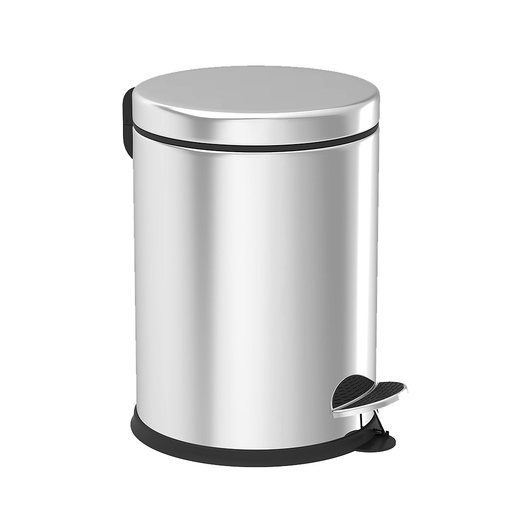 Ведро для мусора с педалью имеет одно отделение круглой формы со съемным внутренним ведром с ручкой. Основным материалом служит нержавеющая сталь, внутренняя емкость изготовлена из пластика. Оснащено педальной системой открывания крышки, позволяющей не прикасаться к емкости руками. Особый механизм обеспечивает плавное закрывание крышки, имеется отделка с защитой от следов.