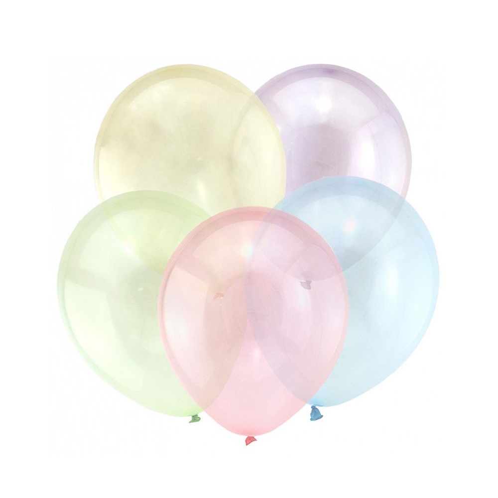 Прозрачные латексные шары с нежными оттенками. Они словно леденцы, которыми хочется любоваться. Пачка Ассорти состоит из 5 оттенков: розовый, голубой, синий, фиолетовый, желтый.