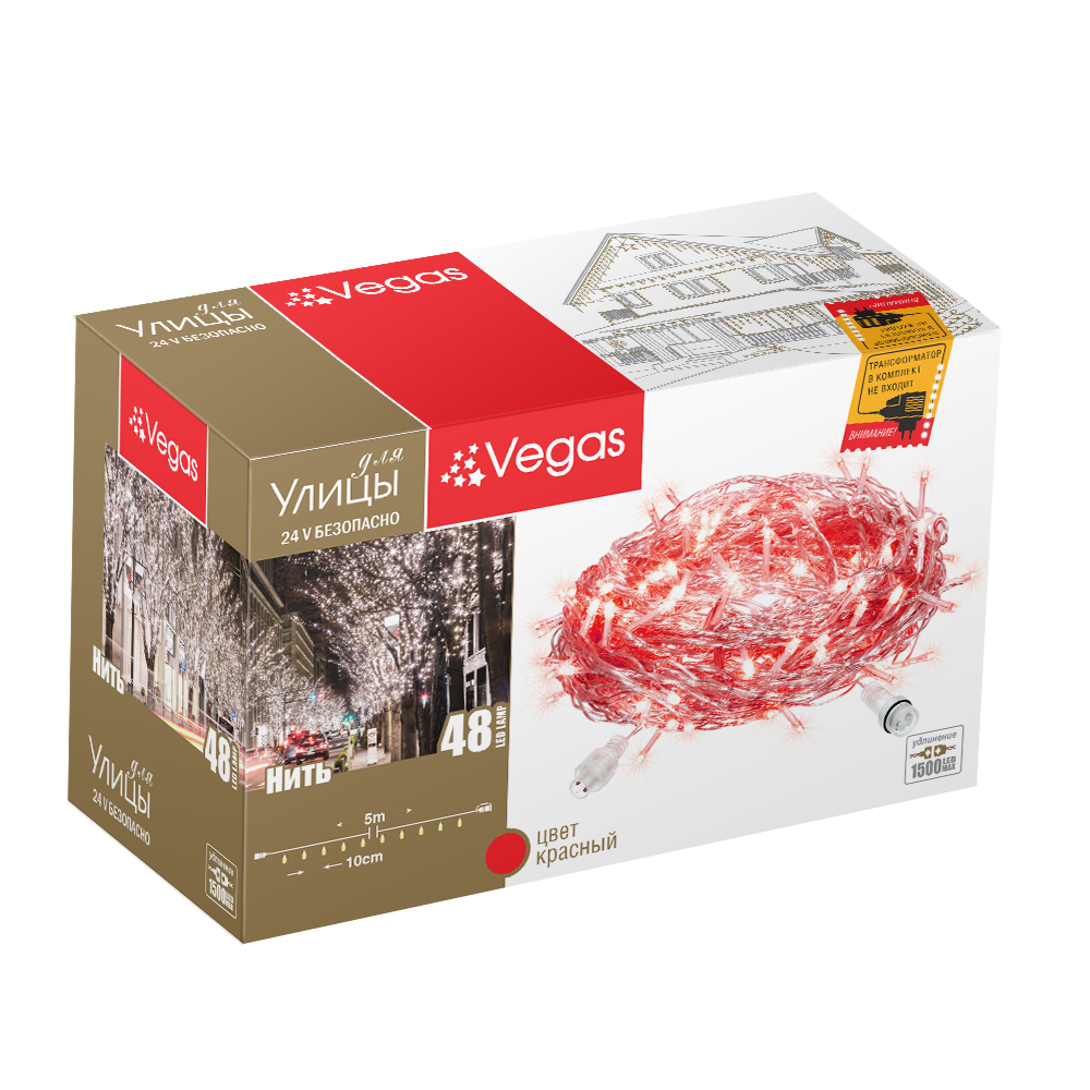 Электрогирлянда VEGAS Нить 48 ламп красный свет 500см