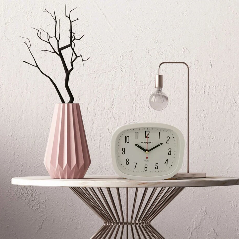 Настольные часы с артикулом PLT20-116 изготовлены в форме прямоугольника со скругленными углами. Такая форма символизирует состояние перехода и изменения. Данная модель представляет собой часы с корпусом из качественного пластика. Лицевая сторона часов защищена минеральным стеклом. На циферблате белого цвета расположены арабские цифры и три стрелки. Ход часов: шаговый (дискретный). Источник питания 1 батарейка стандарта ААА (не входит в комплект).