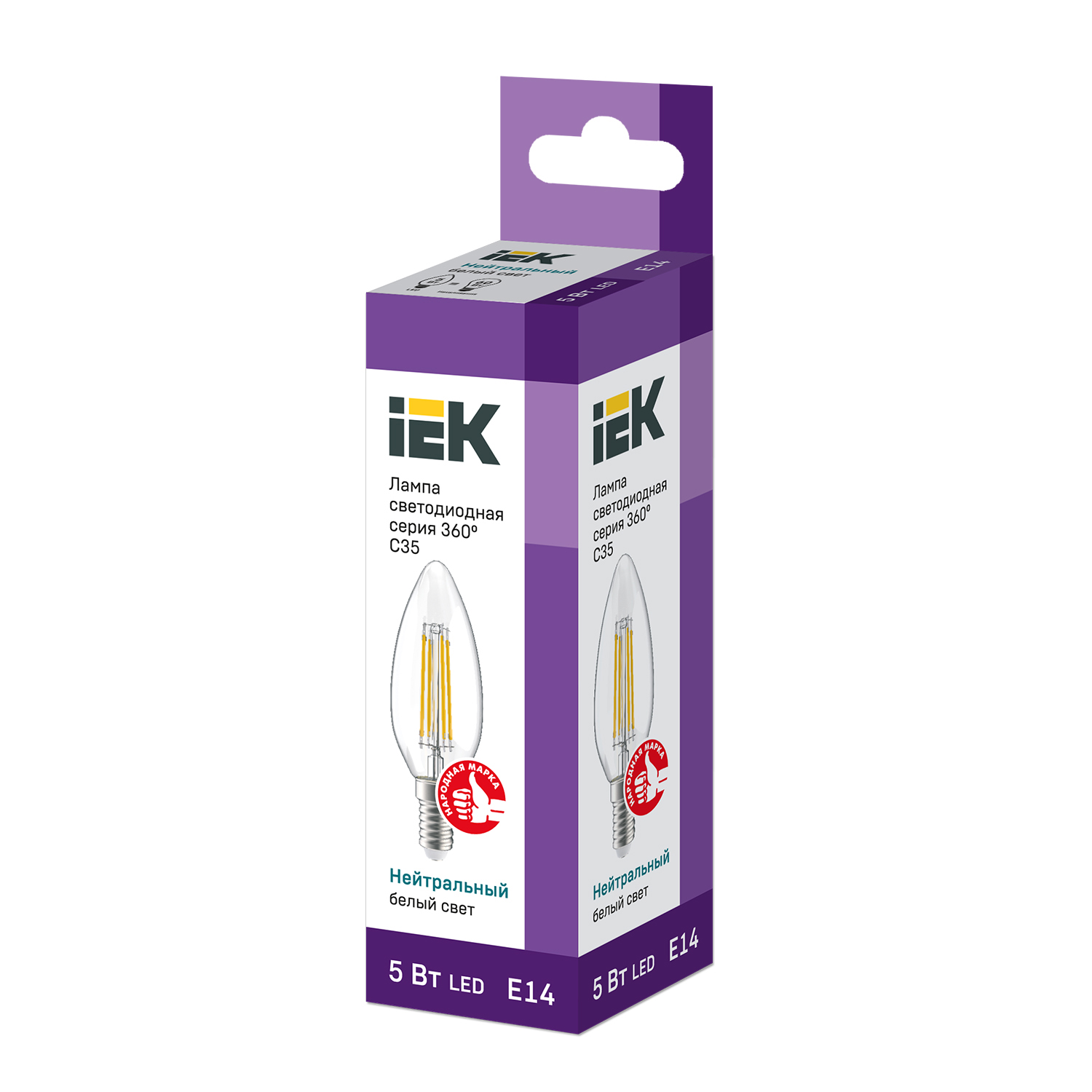 Лампа светодиодная IEK Filament LED LLF-C35-5-230-40-E14-CL