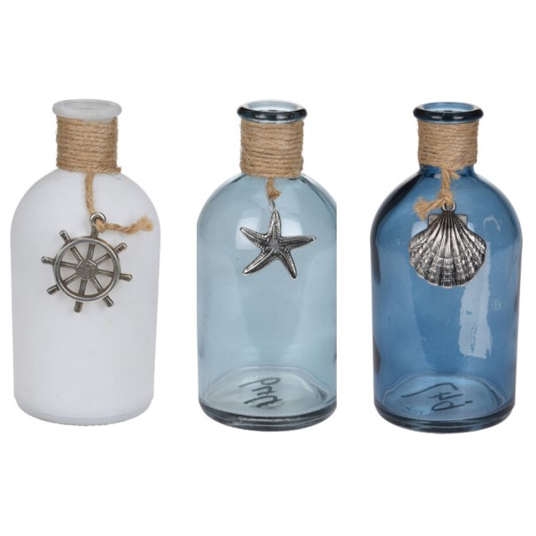 Декоративная ваза в форме бутылки, украшенная веревкой и металлической фигуркой послужит прекрасным дополнением в любом интерьере. Это оригинальный подарок себе, друзьям и близким.